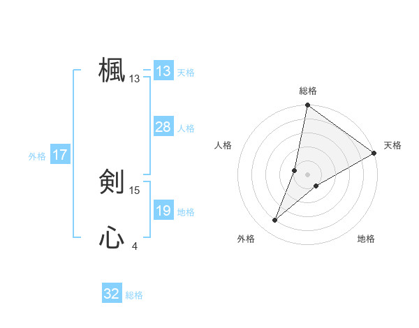 楓 剣心さんの外格は17画の4点!