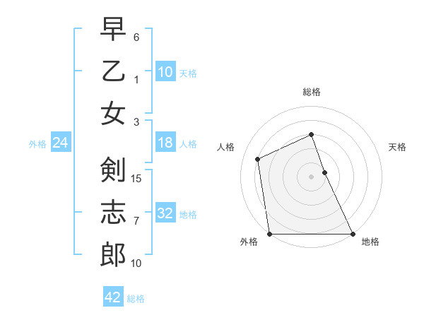 早乙女 剣志郎さんの外格は24画の5点