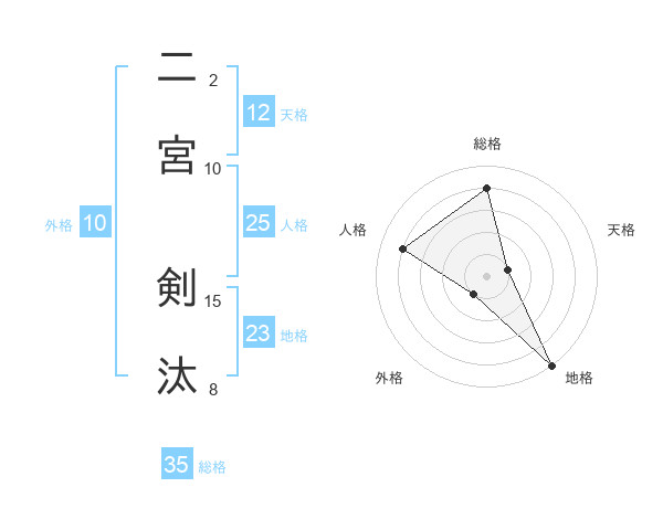 二宮 剣汰さんの人格は25画の4点!