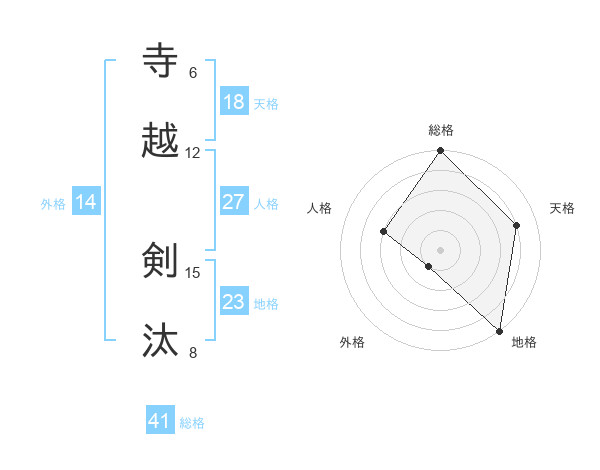 寺越 剣汰さんの総格は41画の5点!