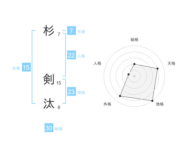 杉 剣汰さんの総格は30画の2点!