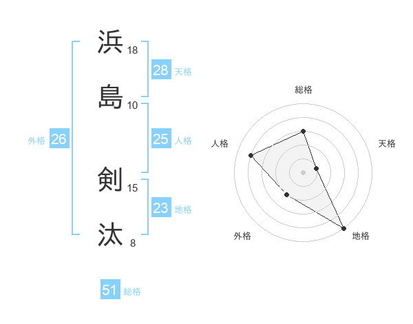 浜島 剣汰さんを姓名の画数から五運を鑑定