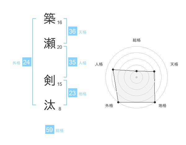 築瀬 剣汰さんを姓名の画数から五運を鑑定