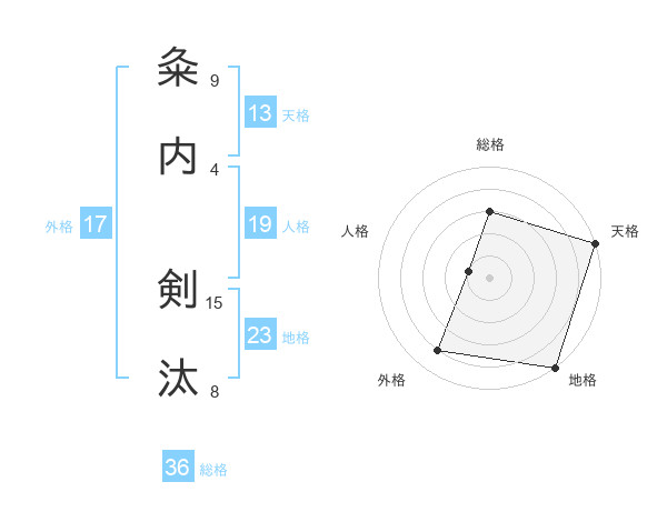 粂内 剣汰さんの天格は13画の5点!