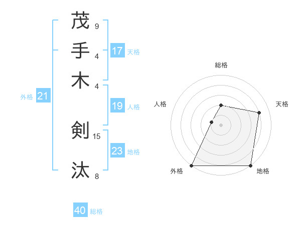 茂手木 剣汰さんの外格は21画の5点!