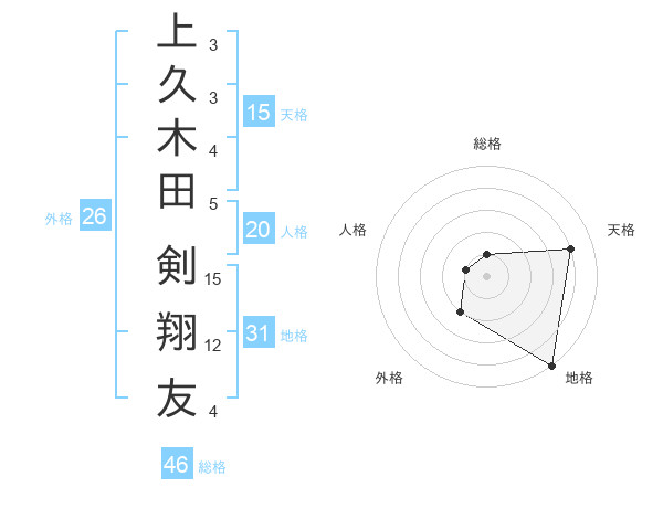 上久木田 剣翔友さんを姓名の画数から五運を鑑定