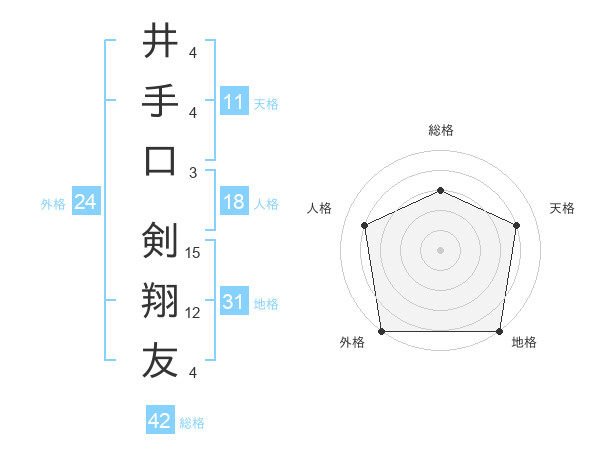井手口 剣翔友さんの総格は42画の3点!