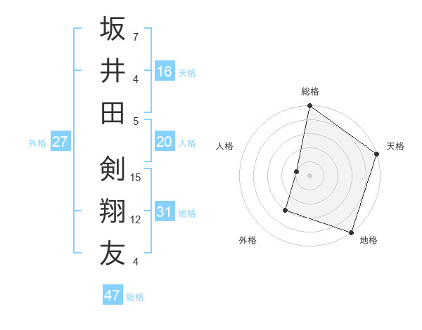 坂井田 剣翔友さんを姓名の画数から五運を鑑定