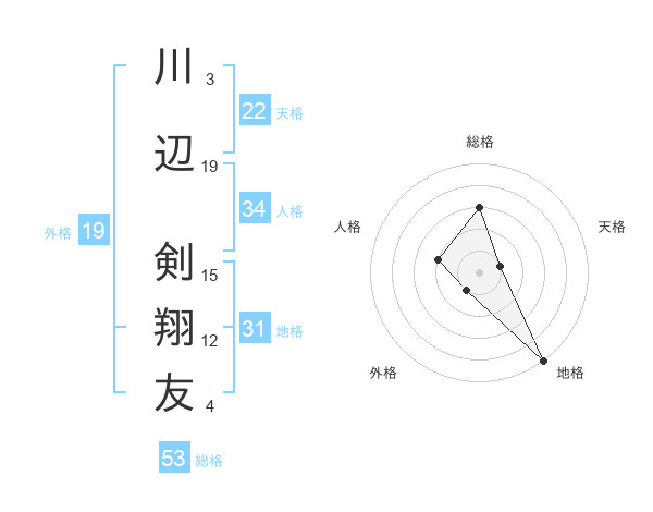 川辺 剣翔友さんを姓名の画数から五運を鑑定