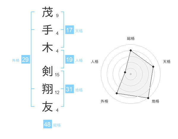 茂手木 剣翔友さんを姓名の画数から五運を鑑定