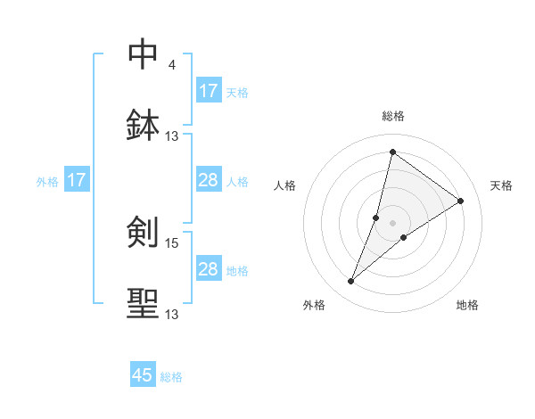 中鉢 剣聖さんの天格は17画の4点!