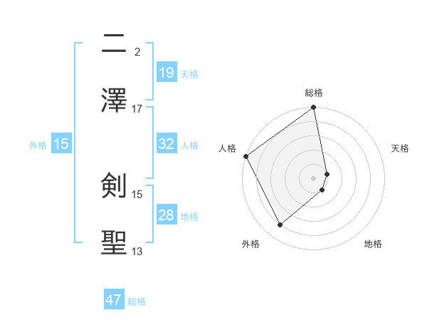 二澤 剣聖さんを姓名の画数から五運を鑑定