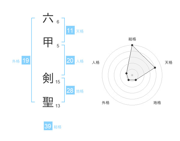 六甲 剣聖さんを姓名の画数から五運を鑑定