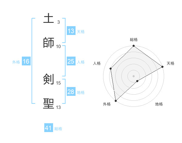 土師 剣聖さんの総格は41画の5点!