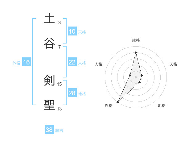 土谷 剣聖さんを姓名の画数から五運を鑑定