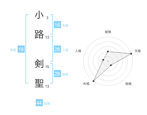 小路 剣聖さんの外格は16画の5点!
