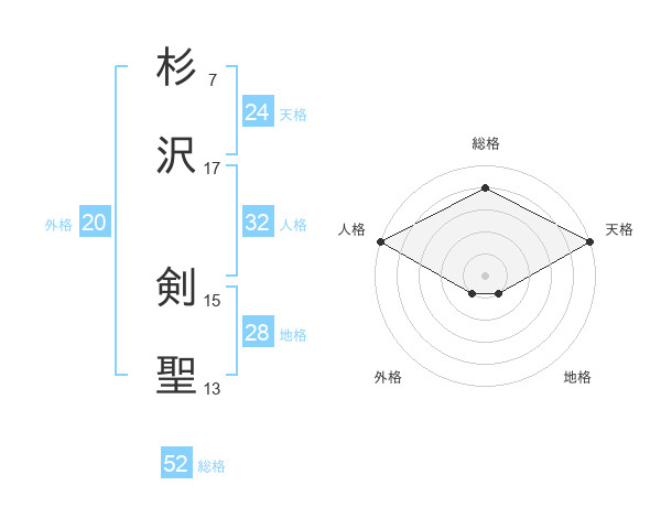 杉沢 剣聖さんを姓名の画数から五運を鑑定