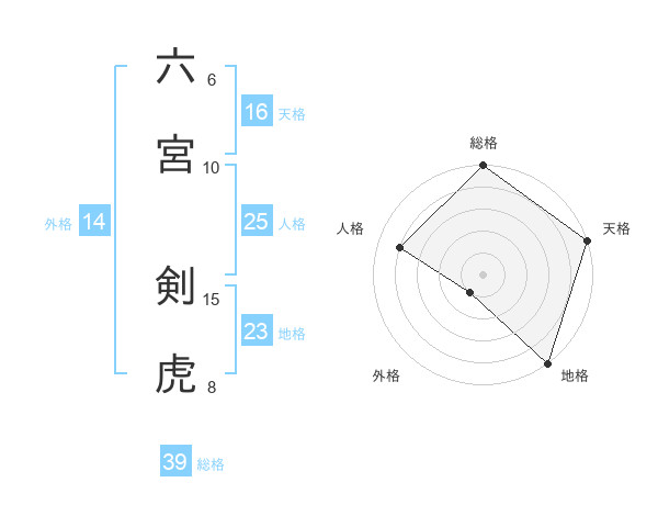 六宮 剣虎さんの総格は39画の5点!