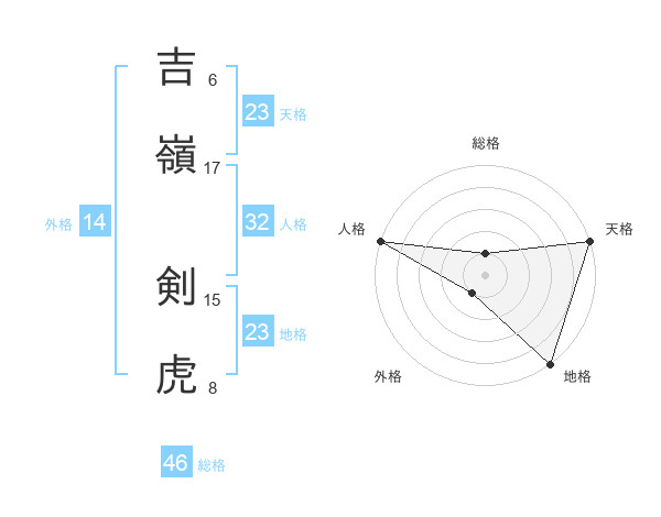 吉嶺 剣虎さんの総格は46画の1点!