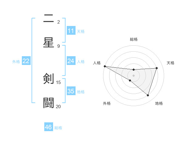 二星 剣闘さんの地格は35画の4点!