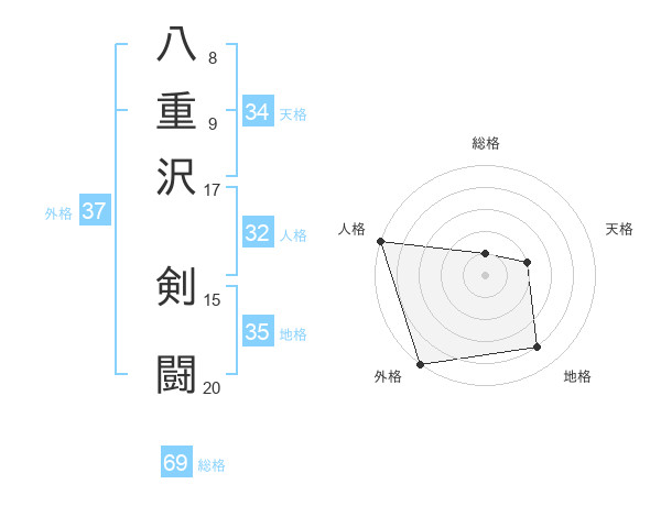 八重沢 剣闘さんの外格は37画の5点!