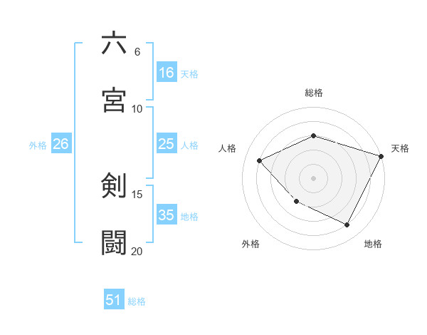 六宮 剣闘さんを姓名の画数から五運を鑑定