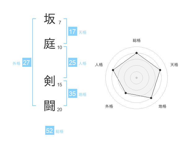 坂庭 剣闘さんを姓名の画数から五運を鑑定