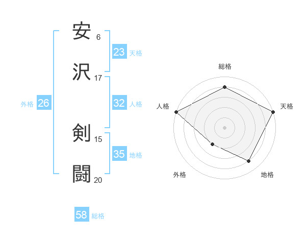 安沢 剣闘さんの総格は58画の4点!