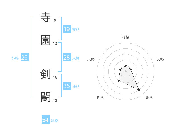 寺園 剣闘さんの総格は54画の1点!