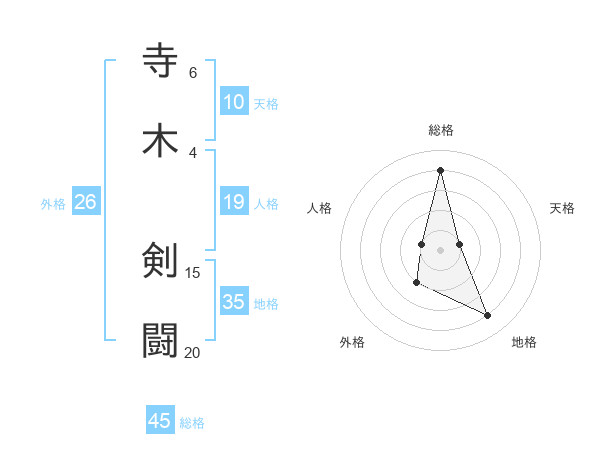 寺木 剣闘さんの総格は45画の4点!