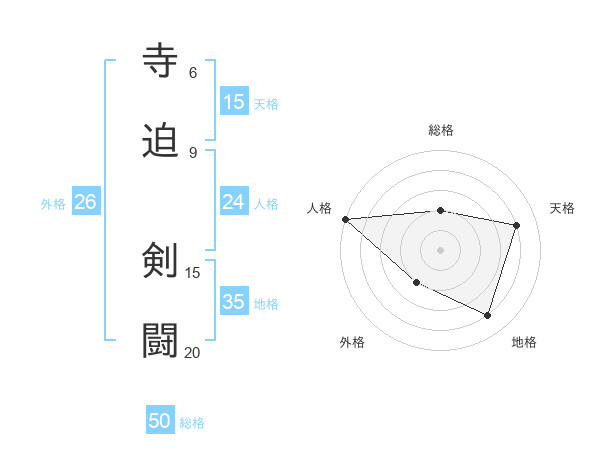 寺迫 剣闘さんの総格は50画の2点!