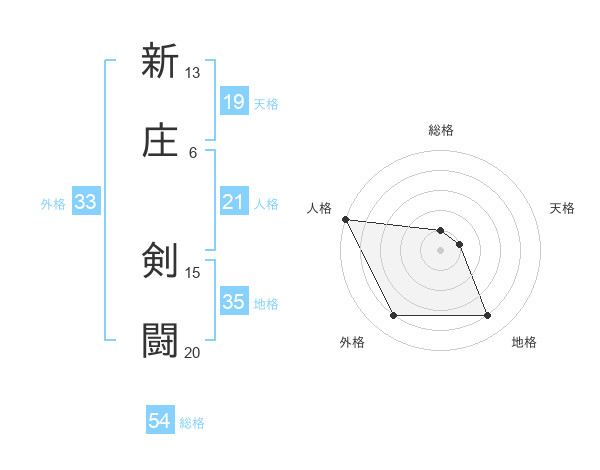 新庄 剣闘さんを姓名の画数から五運を鑑定