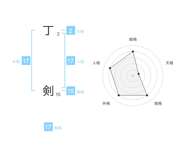 丁 剣さんの総格は17画の4点!
