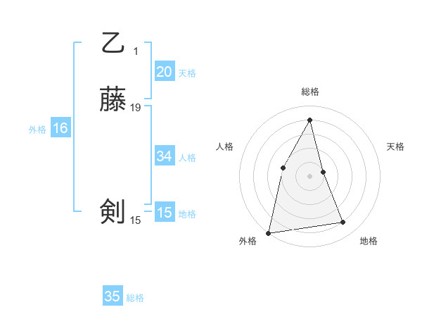 乙藤 剣さんの天格は20画の1点!