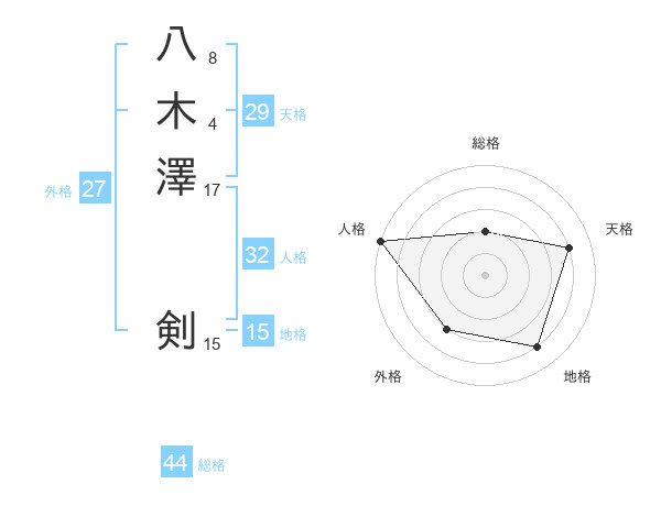 八木澤 剣さんを姓名の画数から五運を鑑定