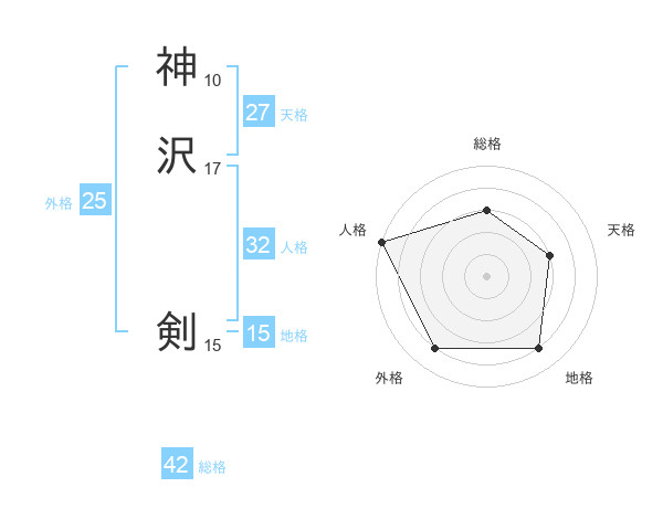 神沢 剣さんの総格は42画の3点!