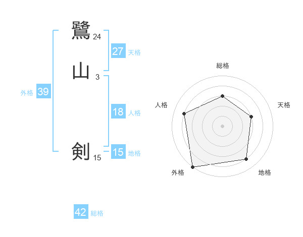鷺山 剣さんを姓名の画数から五運を鑑定