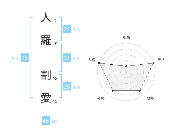 人羅 割愛さんの天格は21画の5点!