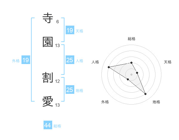 寺園 割愛さんの総格は44画の2点!