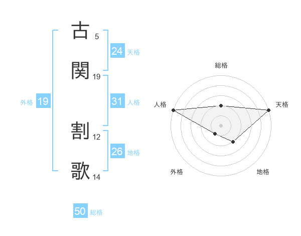 古関 割歌さんの総格は50画の2点!