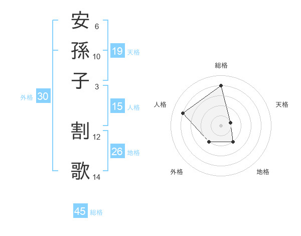 安孫子 割歌さんの総格は45画の4点!
