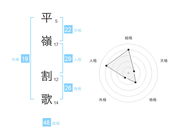 平嶺 割歌さんの総格は48画の4点!