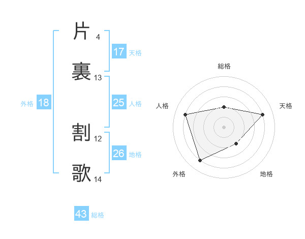 片裏 割歌さんの天格は17画の4点!