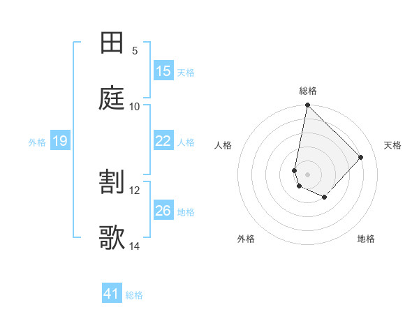 田庭 割歌さんの総格は41画の5点!