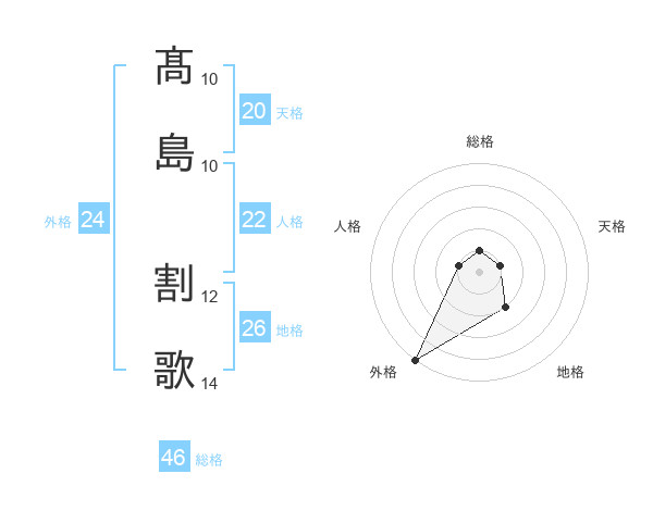 髙島 割歌さんを姓名の画数から五運を鑑定