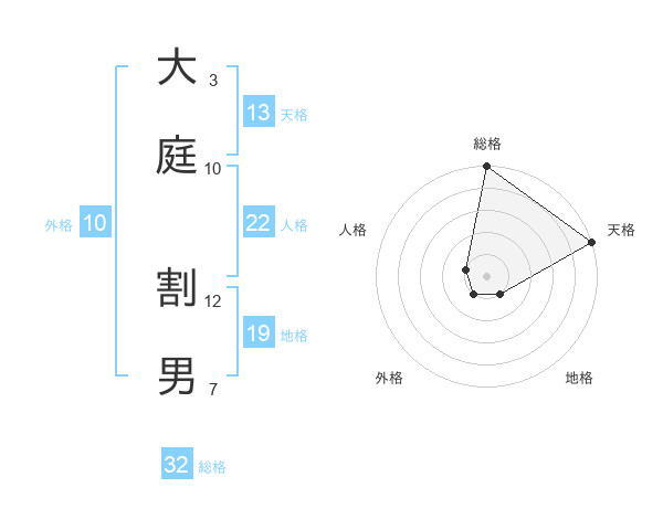 大庭 割男さんの天格は13画の5点!