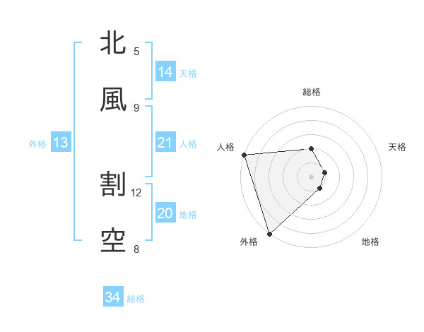 北風 割空さんの地格は20画の1点!