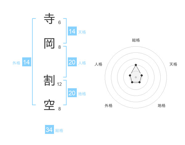 寺岡 割空さんを姓名の画数から五運を鑑定