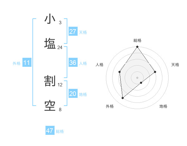 小塩 割空さんの総格は47画の5点!