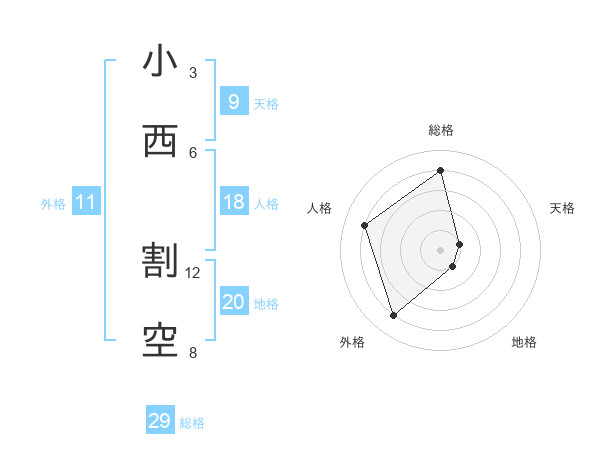 小西 割空さんの地格は20画の1点!